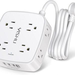 6 Ft Surge Protector Power Strip – 8 Widely Outlets with 4 USB Ports, 3 Side Outlet Extender with 6 Feet Extension Cord, Flat Plug, Wall Mount, Desk USB Charging Station, ETL,White