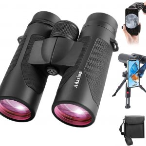 12×42 HD Binoculars for Adults High Powered with Phone Adapter and Tripod, Super Bright BAK4 Prism Waterproof Binoculars for Bird Watching Hunting Hiking Safari Travel Sports